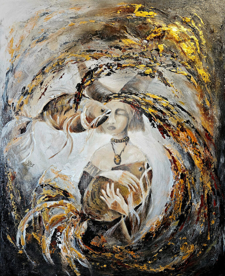 Her creative process is deeply intuitive and introspective. “Each piece is a conversation,” she shares. “I rework and refine until the artwork speaks clearly to me — sometimes that means starting over completely.”